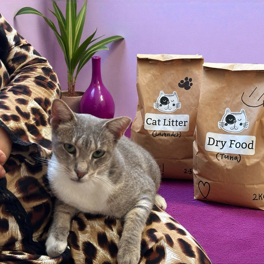 Our box includes premium cat food, litter, toys, and surprise accessories.